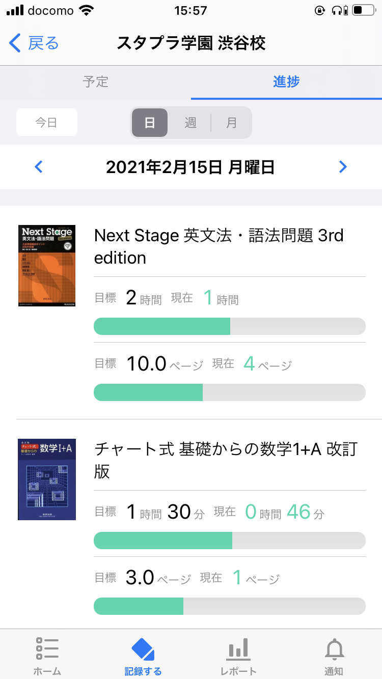 「今日は英語のワークを45分やった」