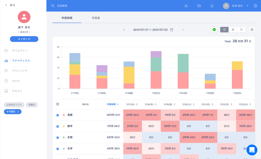 定期的な保護者面談では、Studyplusのデータなどをもとに学習量の推移をお見せする事もしています。