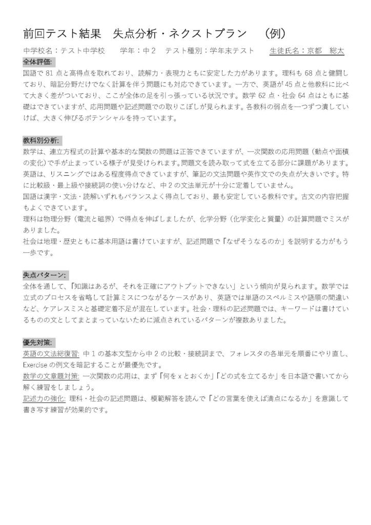 お子さん一人では気づけない弱点も、テストの答案や普段の問題演習を見れば特定できます。